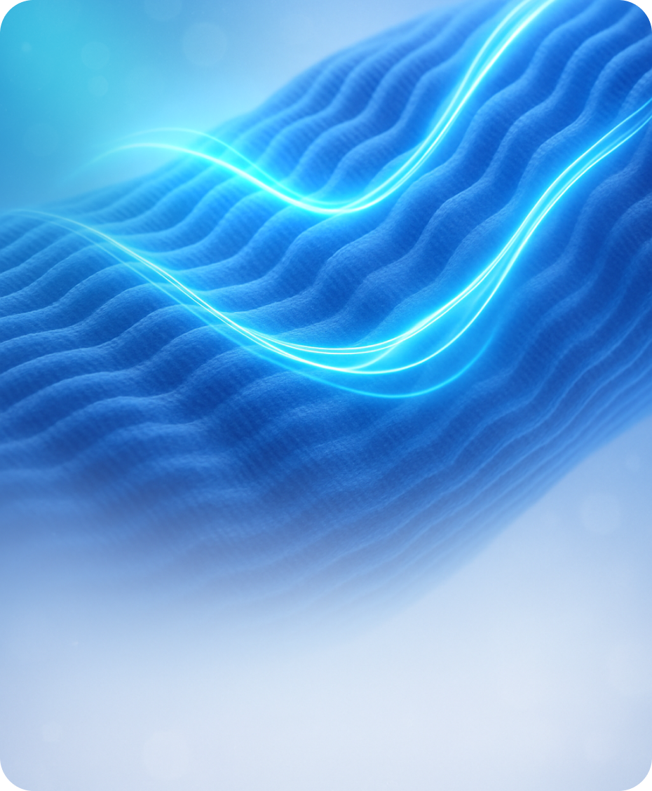 Unser innovatives 3D-Wellenmuster massiert deine Haut bei jeder Bewegung – für bessere Durchblutung und spürbare Entlastung.