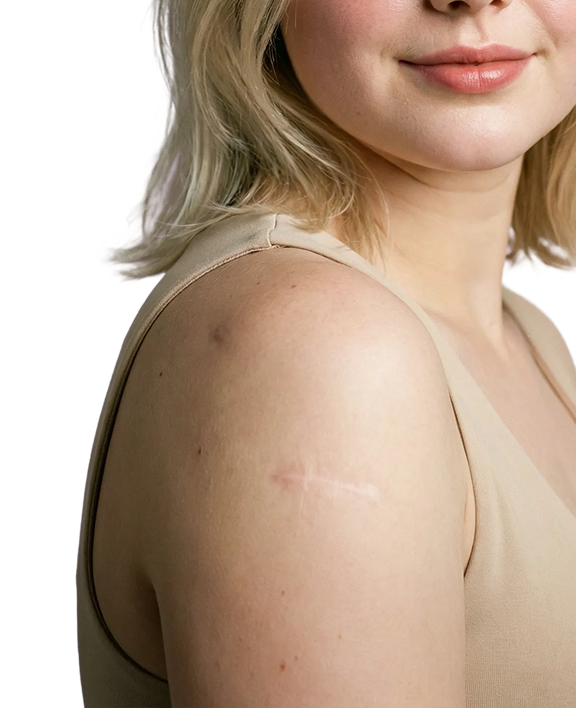 Diese Patientin hatte eine mehrere Jahre bestehende Narbe im Rückenbereich. Durch die regelmäßige Anwendung einer silikonbasierten Narbenpflege konnte innerhalb weniger Wochen eine spürbare Glättung der Haut sowie eine sichtbare Verbesserung des Hautbildes erzielt werden.